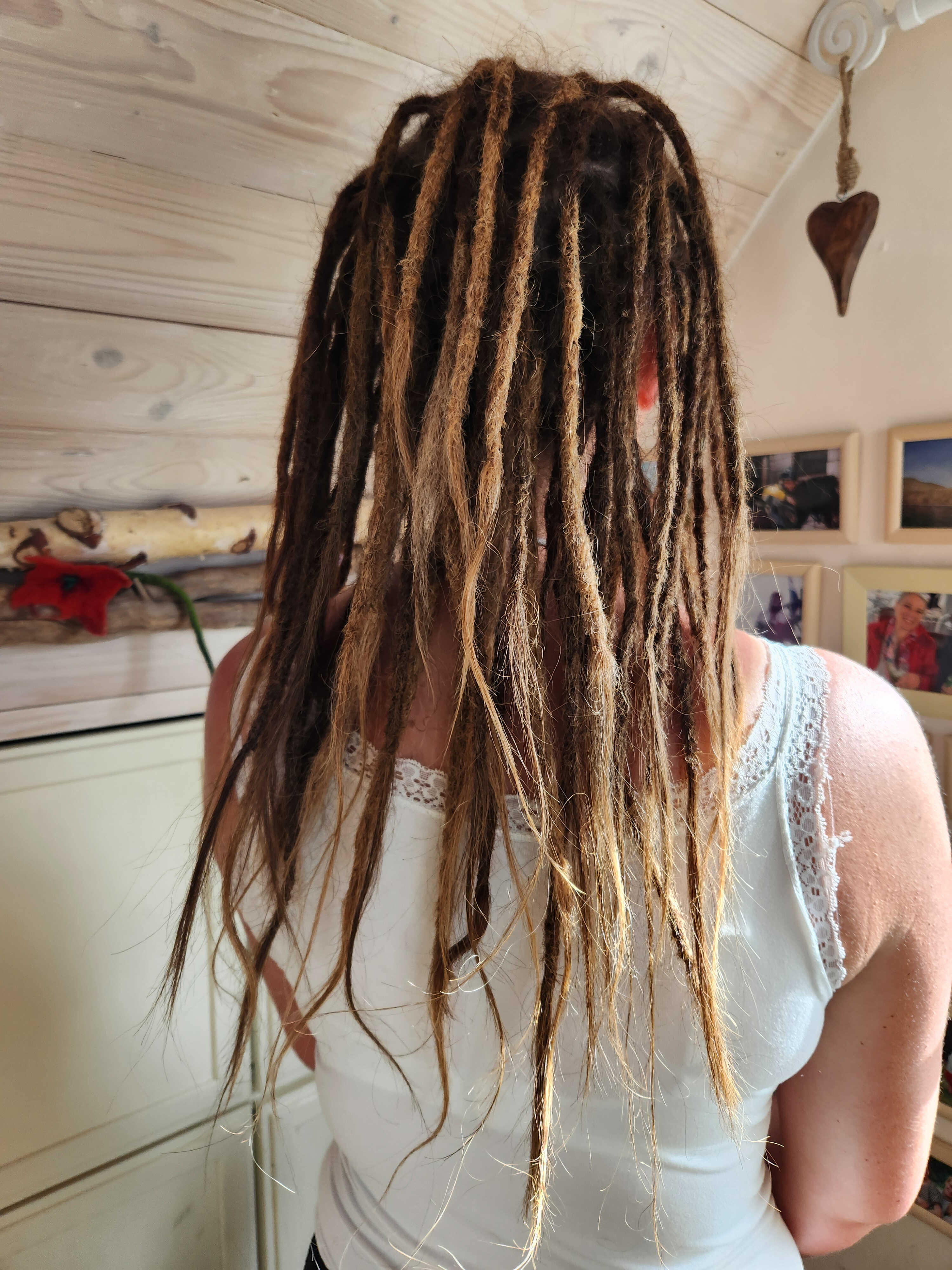 Bedenke bitte auf jeden Fall: Wenn der Termin beendet ist, dann sind deine Dreads nicht fertig. Sie sind jetzt gut vorbereitet und müssen sich entwickeln. Wie lange es dauert bis der Filzprozess einsetzt, ist sehr unterschiedlich und hängt von der Haarstruktur ab.
